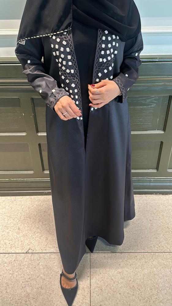 عباية قماش تفته مع طرحة بتفاصيل تطريز مثل العبايه