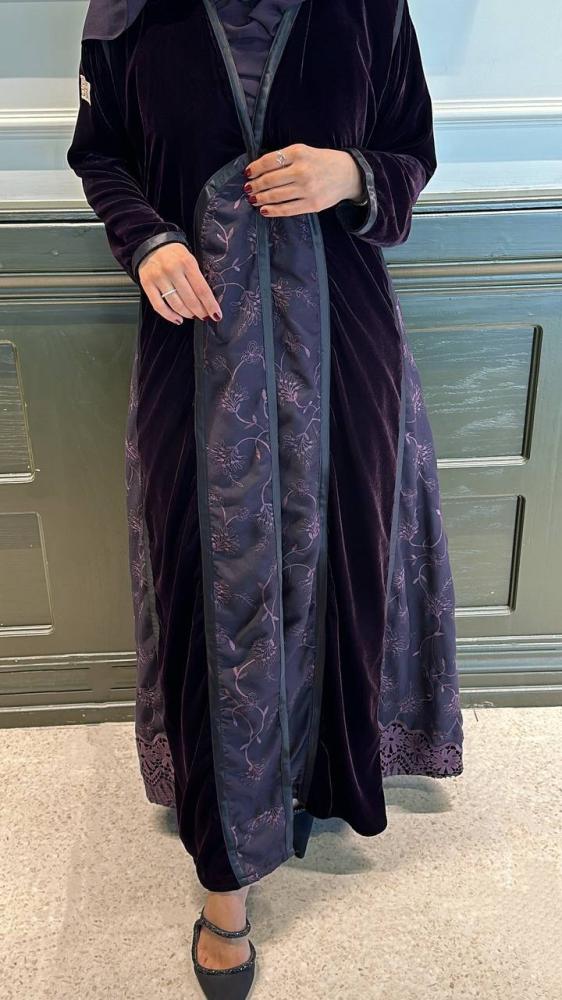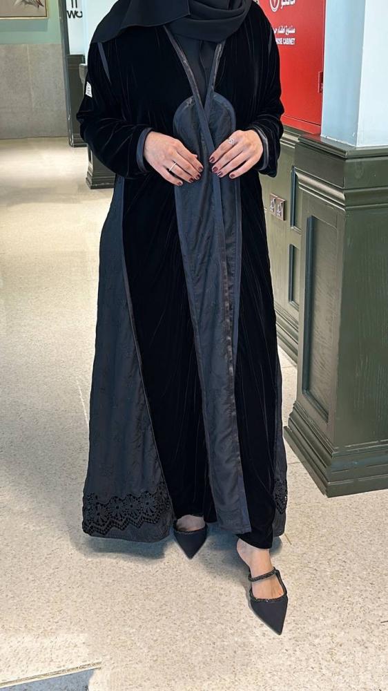 عباية مخمل كوري مع طرحة بتفاصيل العباية
