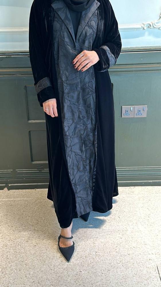 عباية مخمل كوري مع طرحة بتفاصيل العباية