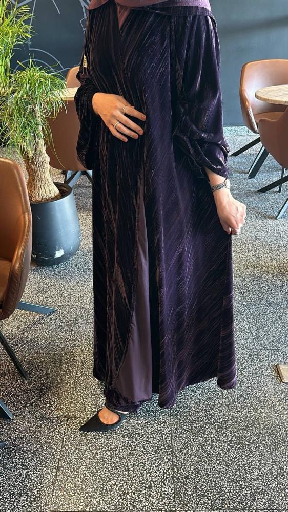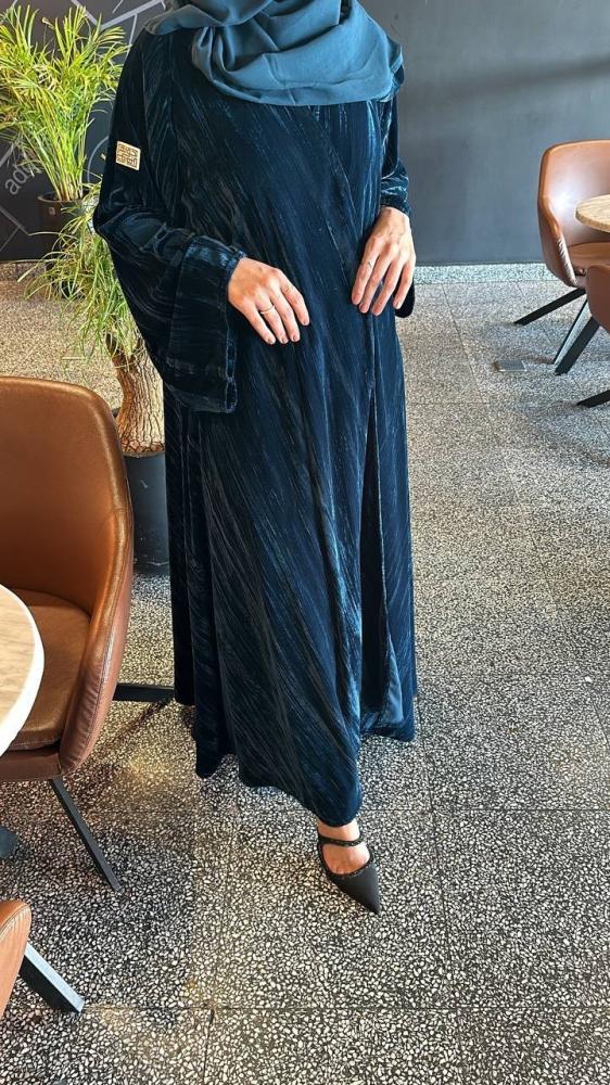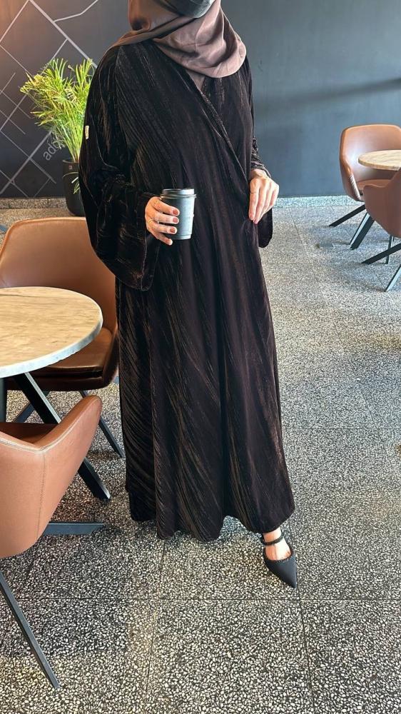 عباية مخمل كوري كلوش مع طرحة ب