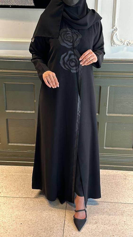عباية كريب مبطنة بتفاصيل أنيقة وكتافات إسفنج تضيف لمسة من الفخامة والانسيابية. التصميم يجمع بين الراحة والرُقي، وتُرفق معها طرحة سادة لإطلالة متكاملة وراقية. مثالية للمناسبات والإطلالات اليومية الراقية.