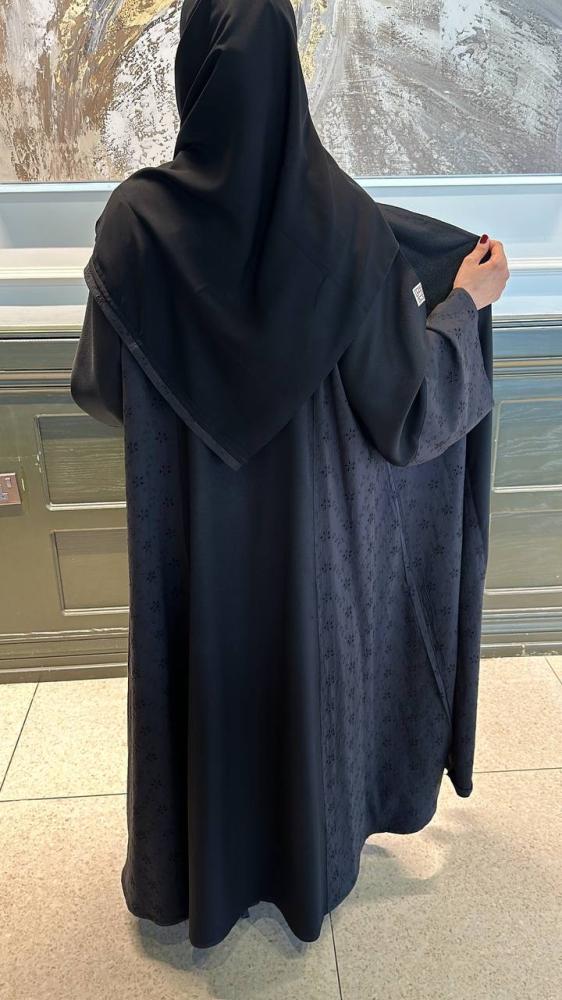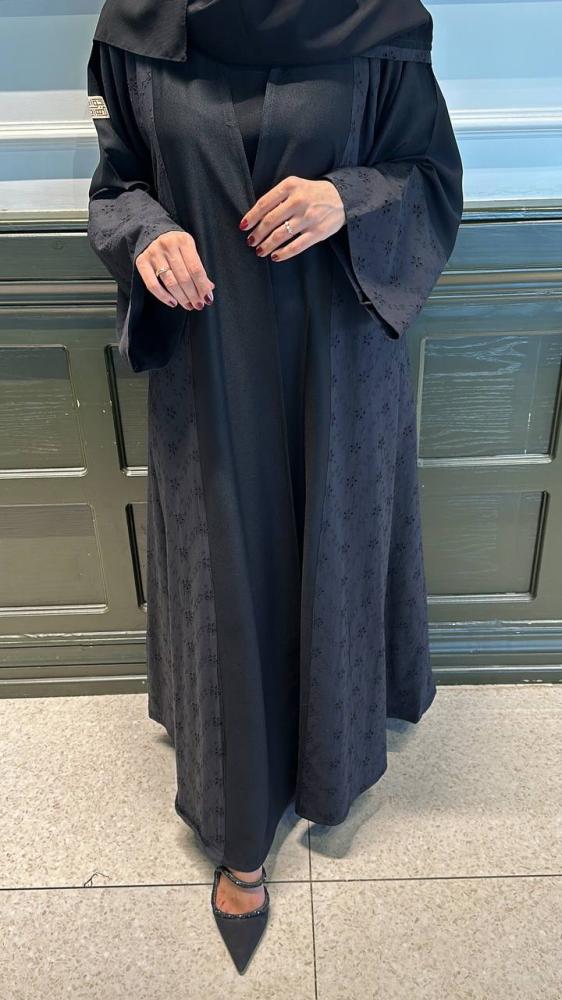 عباية كريب مع قماش جاكار ع الجوانب أنيقة مصنوعة من قماش فاخر ناعم، بتصميم كلاسيكي يعكس الرقي والبساطة. تأتي مع طرحة بطرف قماش جاكار مميز أنيقة تتناسق مع العباية لتمنحك إطلالة متكاملة وراقية.