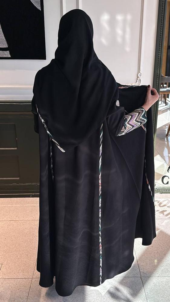 - الطرحة: سادة مع طرف ملون متناسق مع العباية