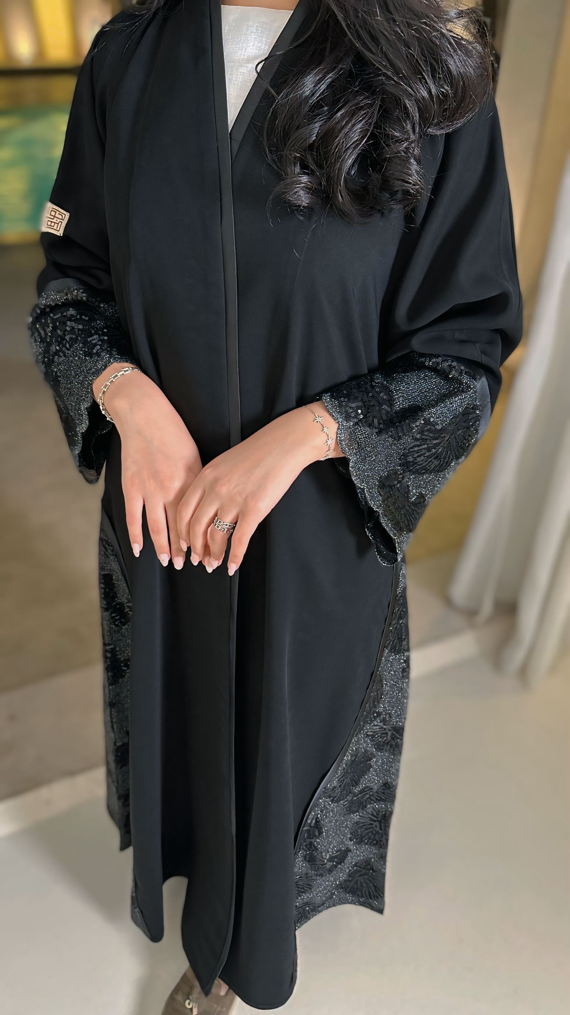 التفاصيل:• خامة: لمياء عالية الجودة• اللون: أسود ملكي عميق• تطريز فاخر من الأطراف والجوانب• قماش ثابت وغير شفاف